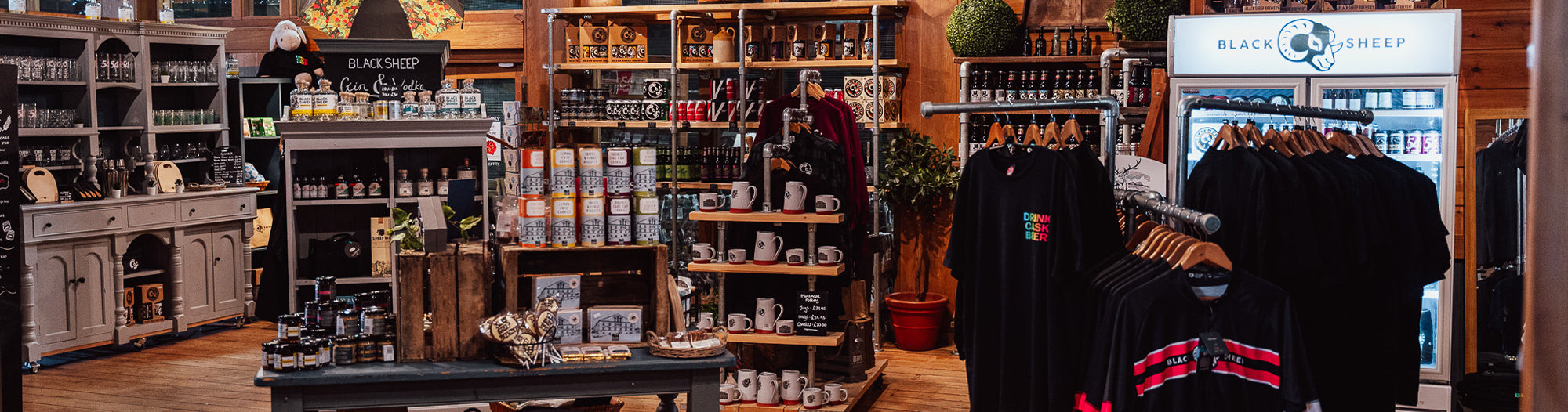 The Black Sheep Brewery Sheepy Shop has something for everyone to take home with them. Every bottled, canned and kegged beer is available from our fully stocked shelves, perfect when you’ve got a fridge that needs stocking up. In addition to beer we have a wide array of Black Sheep glassware, clothing and gifts, and other Yorkshire treats to take away with you. They say a pint of Black Sheep at home in a Black Sheep glass and T-shirt tastes better…